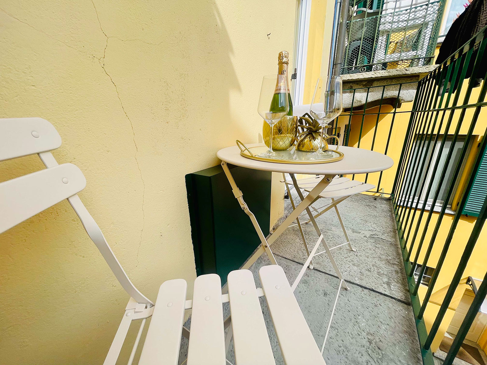 L'appartamento è composto da un soggiorno con un divano che può diventare un comodo letto matrimoniale, un tavolo con sedie, una smart TV e una cucina completamente attrezzata, inoltre è presente un piccolo balcone (non ha vista lago) con tavolino e due sedie, ideale per rilassarsi dopo una giornata sul lago e gustare un buon bicchiere di vino.