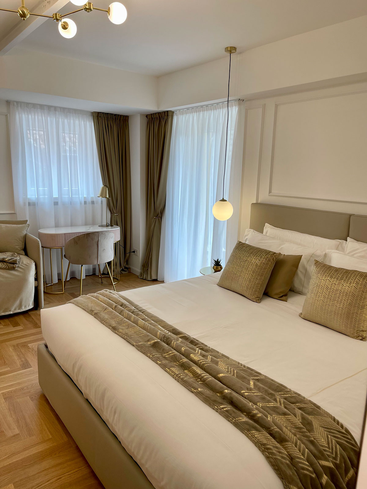 L'appartamento SUITE KING "Don Marcelo" di Bellagio Luxury Suites Apartments è un accogliente ed elegante bilocale di 47 mq, arredato in uno stile classico contemporaneo selezionando solo le migliori rifiniture e qualità, per garantire un'esperienza indimenticabile e un soggiorno di altissima qualità. Perfetto per accogliere comodamente fino ad un massimo di 4 ospiti.